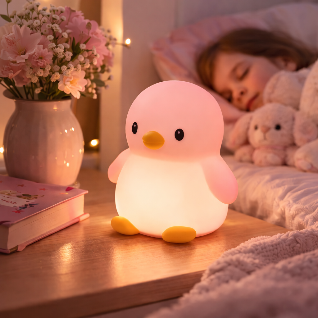 Luz cálida, silicona segura y apagado automático para una rutina de sueño tranquila.